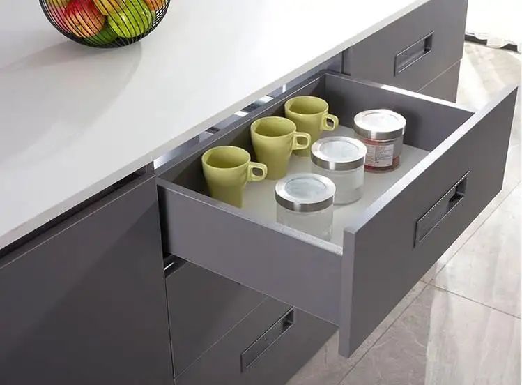 Disse myklukkende undermonterte skinnene i engrosutgave sikrer sømløs skuffebevegelse med stille drift og en myklukkemekanisme som forhindrer brå lukking. Ideelle for moderne møbler, tilbyr de et elegant, diskret utseende og forbedrer funksjonaliteten. Perfekt designet for undermontert installasjon, sikrer disse skinnene jevn åpning og lukking.